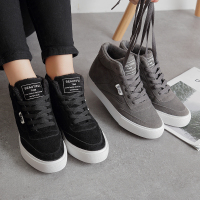 SUNTEK新品魔术贴搭扣学生高帮帆布棉鞋女时尚韩版百搭内增高小白鞋
