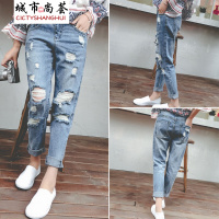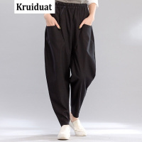 Kruidvat2017春新款民族风大码女装棉麻哈伦裤宽松阔腿小脚长裤B078