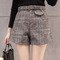 2017新款秋冬季复古高腰格子毛呢短裤女百搭裤裙显瘦外穿阔腿靴裤