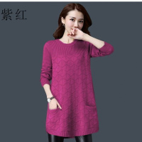 大码女装中长款圆领毛衣女秋冬加肥加大版宽松显瘦时尚针织打底衫