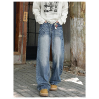 美式复古水洗牛仔裤男直筒宽松阔腿裤高街潮牌做旧休闲长裤子男款