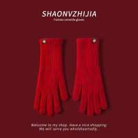 新年红色长款毛线手套女冬季加厚保暖骑行防寒全指针织可触屏