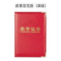 高级感荣誉证件书外壳皮革颁奖奖状荣誉证书压花款-红色-烫金[荣誉证书]-袋装