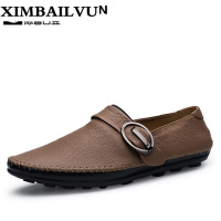 品牌都市时尚套脚懒人鞋舒适柔软手工皮鞋潮流百搭皮带扣扁头软底皮鞋商务休闲鞋秋季皮鞋