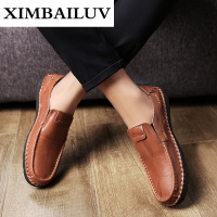 路蒙卡帝品牌2017舒适套脚男皮鞋秋款皮鞋男都市手工缝线休闲皮鞋一脚蹬懒人套脚鞋软底豆豆鞋