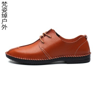 男士手工皮鞋商务休闲鞋车缝线透气英伦潮鞋时尚系带百搭男皮鞋