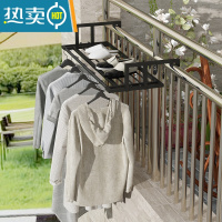 敬平护栏杆晾晒衣架阳台防盗网晾衣绳窗台挂衣服架晒鞋架庭院栏杆花架 加粗黑色 长80晒衣篮