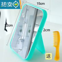敬平化妆镜台式桌面便携小手持可立宿舍随身梳妆镜子女收纳盒学生可爱便携式用镜 自带小梳子+可收纳[圆形粉]
