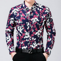 秋冬中年男土加绒加厚长袖衬衫男子带绒保暖衬衣碎花爸爸