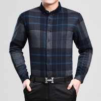男装冬季加绒加厚长袖衬衫男士中年商务休闲爸爸装保暖寸衣土