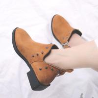 短靴女秋冬复古风个性时装靴毛毛口坡跟磨砂皮靴软底加绒棉鞋