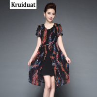 Kruidvat2017夏季新款韩版修身显瘦圆领短袖印花两件套连衣裙LSN