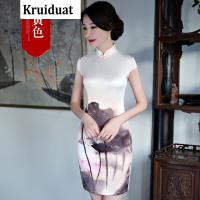 Kruidvat2017短款旗袍修身性感日常少女复古短袖水墨画印花连衣裙HQ