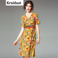 Kruidvat2017夏季新款女装短袖V领气质修身连衣裙显瘦A字裙中图片色