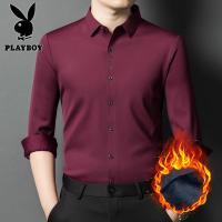 花花公子新款高品质高品质真超绒格子商务衬衫