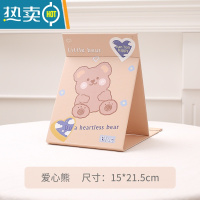 敬平台式化妆镜桌面可立大号折叠小镜子女便携宿舍学生纸镜随身梳妆镜 黑色 爱心熊便携式用镜