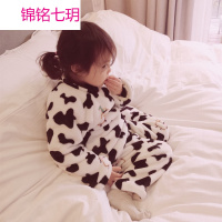 锦铭七玥2017冬男女童睡衣儿童法兰绒加厚家居服套装双层加厚睡衣