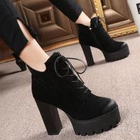 欧美防水台粗跟高跟鞋女2017秋冬新款短靴厚底圆头马丁靴及踝靴