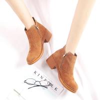 2017秋冬新款休闲短靴英伦风厚底粗跟靴百搭高跟裸靴绒面马丁靴女