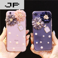 JP潮流品牌韩国花朵iphone7手机壳苹果6splus手机壳防摔透明女款水钻硅胶套