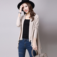 流苏斗篷披肩秋装外套女中长款2017新款春秋宽松韩版长袖针织开衫