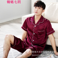 锦铭七玥春秋季丝绸睡衣男士夏季睡衣短袖男薄款加大码仿真丝绸居服套装