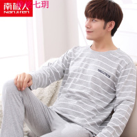 浪莎睡衣男士春秋款纯棉长袖可外穿男款四季休闲条纹加大码家居服