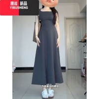 YIBUSHENG灰色针织吊带连衣裙女季辣妹收腰显瘦A字背心裙气质包臀长裙子