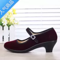 SUNTEK老北京布鞋女广场舞鞋酒店黑色工作鞋礼仪鞋女士黑红色平绒高跟鞋