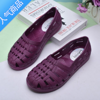 SUNTEK2023年新款夏季凉鞋女妈妈软底沙滩鞋洞洞防水防滑平跟水晶果冻鞋