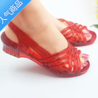 SUNTEK凉鞋女夏新款水晶透明坡跟鱼嘴防滑露趾百搭休闲塑胶沙滩鞋女