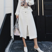 薇侣2017秋季新款两穿吊带裙高腰抹胸气质白色背带连衣裙开叉半裙