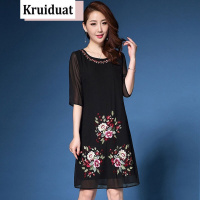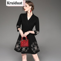 佐丹曼中国风女装连衣裙2017秋冬新款名媛气质显瘦民族风刺绣a字裙打底黑色