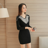 法式针织连衣裙女春秋季显瘦v领打底小黑裙赫本风胖mm垂感裙子潮
