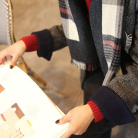 秋冬季韩版围脖小格子学生流苏超大披肩女长款围巾百搭日系小清新