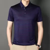 专柜桑蚕丝短袖T恤男中年条纹翻领真丝免烫POLO衫