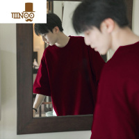 YANXU中年男士长袖T恤圆领爸爸春装薄款上衣中老年人针织体恤衫