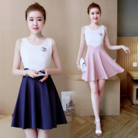 步来褶惠无袖优雅韩版时尚气质百搭甜美连衣裙2017年夏季收腰夏