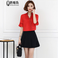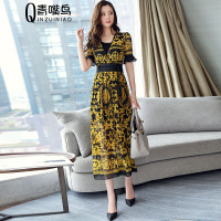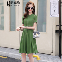 莞馨时尚气质2017年夏季短袖中长款潮流甜美百搭套头连衣裙