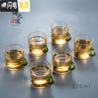 三维工匠加厚可高温玻璃小茶杯彩把品茗杯透明把功夫茶杯茶碗功夫茶具杯子 绿把-直把杯6只120