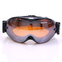 新款专业滑雪镜双层防雾球面镜防紫外线可套近视镜雪镜黑色框桔色增光镜片男女均可佩戴