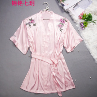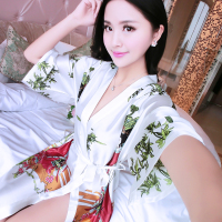 夏短袖真丝睡衣女款性感睡袍单件睡裙古典和服系带美女浴袍家居服