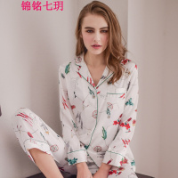 锦铭七玥韩版春秋冰雪丝真丝女士睡衣辣椒经典西装领长袖居服套装