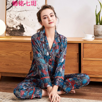 锦铭七玥耀婷春款纺真丝睡衣 女士长袖长裤居服两件套装厂571