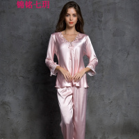 锦铭七玥春秋性感仿真丝睡衣女秋季薄款丝绸蚕丝质宽松套装妈妈款居服