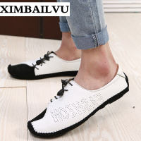 品牌2017秋季时尚百搭手工休闲鞋舒适柔软男士皮鞋轻便软底包头懒人鞋豆豆鞋男驾车鞋