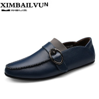 品牌2017秋季新款低帮浅口单鞋舒适柔软男皮鞋一脚蹬套脚鞋个性皮带扣轻便豆豆驾车鞋