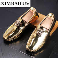 路蒙卡帝品牌新款潮男豆豆鞋韩版金色亮面百搭懒人鞋舒适单鞋男透气休闲鞋一脚蹬乐福鞋轻便驾车鞋2