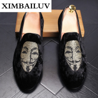 路蒙卡帝品牌男士内增高皮鞋人头刺绣绒面休闲鞋舒适透气套脚潮男夜店鞋一脚蹬轻便懒人驾车鞋L92