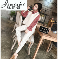 纪尼诗女装春季2018新款时尚短马甲+长袖修身衬衫+修身显瘦萝卜裤通勤淑女三件套8627